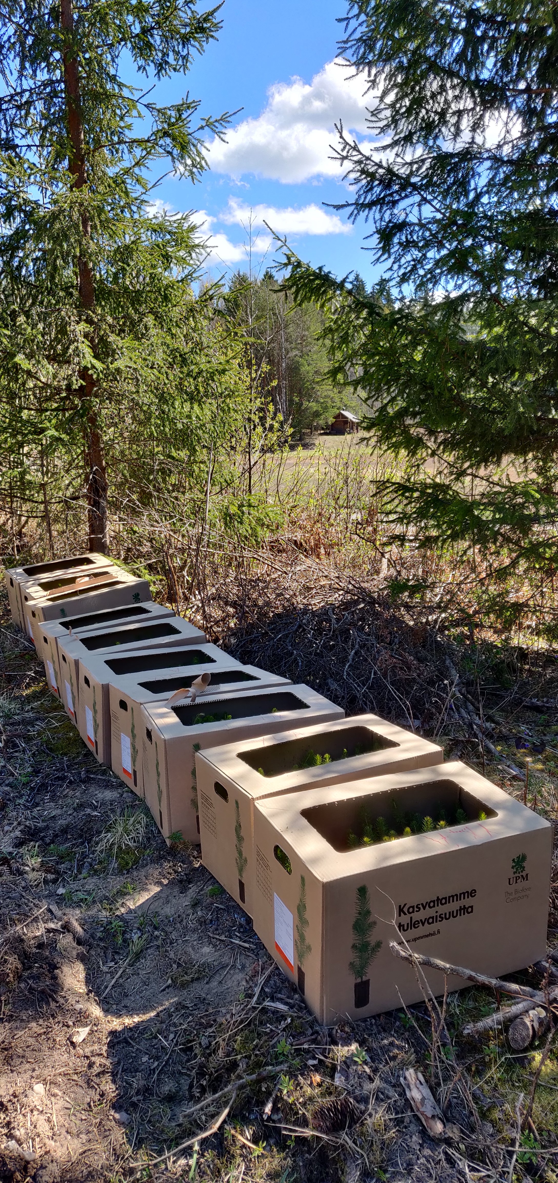 Pottiputket (joilla taimia istutetaan) ja taimivakat (joissa taimia kannetaan mukana) saatiin lainaan UPM:ltä, josta olin tilannut taimet. Näitä kannattaakin kysyä eri toimijoilta lainaan, vaikka yksien ostaminenkin saattaa olla järkevää, jos tulevaisuudessakin istuttamista tulee.
