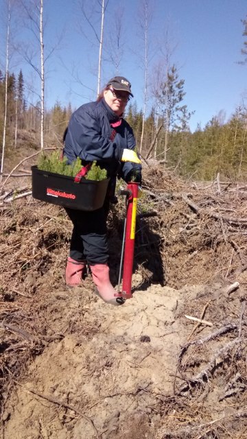 Metsänuudistamisvelvoite tulee ihan laista, ja se täyttyy käsittääkseni siinä vaiheessa, kun riittävän tiheä taimikko on noin puolimetrinen korkeudeltaan. Ja aukon ollessa 0,3 ha tai enemmän, on istutettava uusia taimia. Tämä siis tarkoittaa, että on seurattava taimien menestymistä jatkossa. Myös taimikonhoito on velvoite, ja tähän mennessä olemme käyneet heinäämässä taimet tänä syksynä. Siitä myöhemmin lisää 🙂 Nämä kaikki työt voi siis toki tilata ammattilaisilta myös, ja kulut voi vähentää metsäverotuksessa. Kaiken kaikkiaan istutus oli ihan mukavaa puuhaa, vaikka maasto olikin haastava!