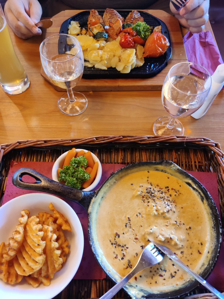 Rantapuiston kävelylenkin jälkeen poikkesimme Rantacasinolla drinkeillä. Mieletön sijainti kyllä veden äärellä! Siitä olikin hyvä suunnata kuuluisaan ravintolaan nimeltä Kettu ja kana (mun muisti pätkii usein ja eläimet nimessä vaihtuu mun tarinoissa. Tarkoitan aina siis tätä ravintolaa, jos puhun esimerkiksi kettu ja hanhi -paikasta 😂). Ihan mieletön ruoka tuo sinihomejuustokana, joka on paikan toiseksi suosituin annos! Nyt nousi vahva kilpailija Lahden Toron pippuripihville, joka myös tuodaan tirisevänä pöytään. Annos oli hyvin tämänkaltainen, valurautapannu täynnä kermaista sinihomejuustopippurikastiketta ja kanaa, lisukkeiden kera. Nam! Vahva suositus myös tälle ravintolalle.