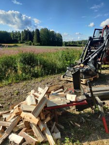 Tarkoituksena olisi tosiaan saada puita tässä näillä tulevilla viikoilla tehtyä, sillä tässä kuussa olisi tulossa vielä lisää polttopuuainesta, kun metsuri käy kaatamassa muutaman hurjan kuusen talon nurkilta pyörimästä. Osasta puita teemmekin leivinuuniin tulevia puolmetrisiä halkoja. Niitä on ensi talveksi kyllä riittävästi (joten kuivumisella ei kiirettä), tosin meillä on edelleen se edelliseen uuniin tehtyjen metrin halkojen puolitus -projekti kesken 😂 tällaista se on, kun ei asuta tilalla ja palkkatyöt on muualla. Mutta ei se mitään, hommia tehdään kun ehditään ja jaksetaan eikä niistä oteta kuitenkaan turhaa stressiä. 😊 Pärjätään kyllä!