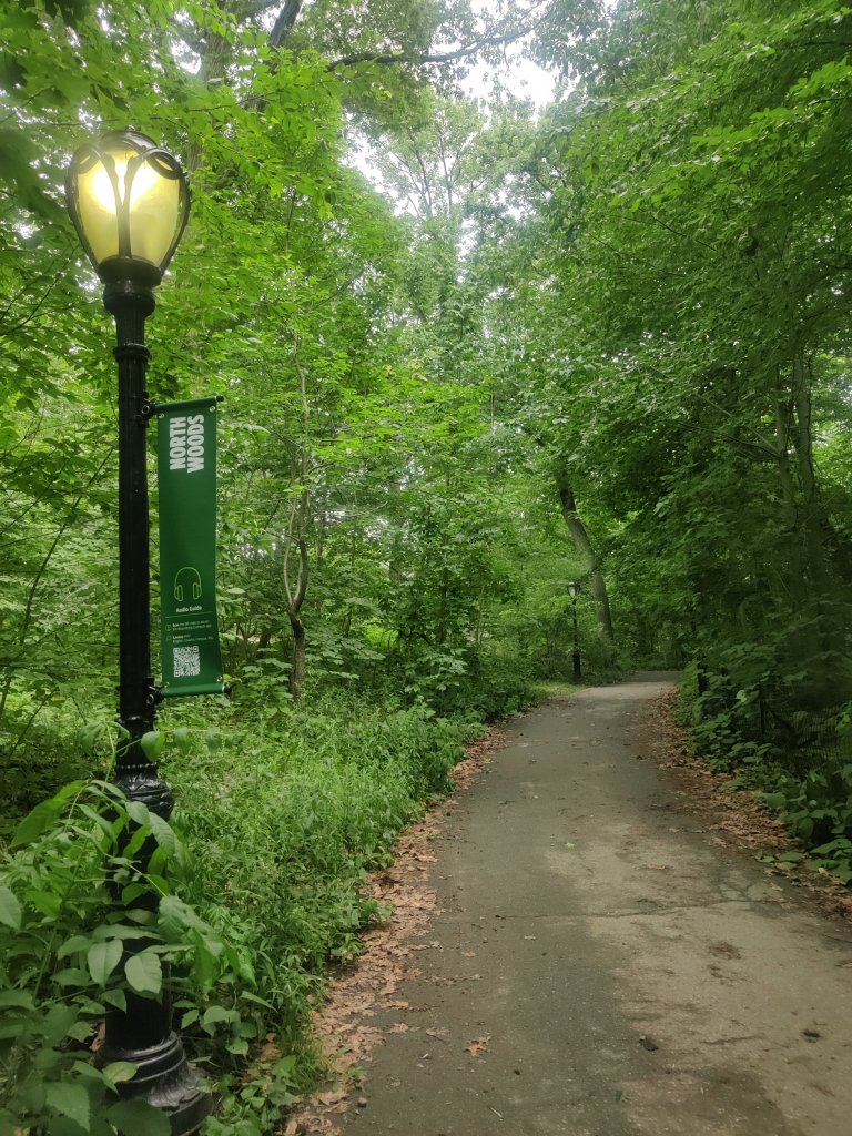 Keskuspuisto eli Central Park on 341 hehtaarin kokoinen mieletön, monipuolinen puisto keskellä n. 8,5 miljoonan ihmisen metropolia. Eihän tuon kokoista aluetta voi haravoida vajaassa 1,5 viikossa kokonaan (kun on muutakin nähtävää), mutta tehtiin lenkki kolmena päivänä eri osissa puistoa. Ensimmäisellä kerralla käytiin isolla nurmella piknikillä ja seurattiin Softball-peliä. Toisella kertaa lenkkeiltiin vähän pidempi reissu ja ihasteltiin erilaisia puita ja pusikoita. Lenkkeiltiin puiston pohjoisosassa North Woodsissa, jossa oli todella metsäistä. Eniten tuolla hämmensi se, miten kirkkaalla päivänvalolla pidetään katuvaloja päällä. En uskaltaisi kyllä hämärissä noihin metsiin, edes katuvalojen turvin, Keskuspuistossa kun on tapahtunut monia (tunnettujakin) rikoksia. Viimeisenä lomapäivänä käytiinkin Strawberry Fieldsillä, jossa on John Lennonin muistomerkki (murhapaikka on aivan tuon puiston vieressä). Lisäksi käytiin jollain sillalla ja taas oli aivan erilaiset maisemat, yhtä ihanat kuin muuallakin Keskuspuistossa! Totesinkin, että täällä puistossa voisi viettää melkein viikon. Soutamaankin olisi tuolla päässyt. Keskuspuisto tuntuikin ”kaupungilta” kaupungin keskellä, sillä puistossa menee autotien kaltaisia teitä, jotka on tarkoitettu lenkkeilijöille, pyörille, hevosille jne. Liikennevaloja ei juuri noudatettu, joten tarkkana sai olla tietä ylittäessään, ettei jää kilpapyöräilijöiden alle 🙂 Tuntuu uskomattomalta, että tuollainen tosiaan löytyy keskeltä metropolia! Puiston laidalla aistii sen kaupungin hälyn, mutta puistoon päästyään se vaan katoaa. Ihmisiä on toki puistossa paljon, joten ei siellä oman metsän kaltaista hiljaisuutta saa, mutta aika kivan hengähdystauon suurkaupungin vilinästä.