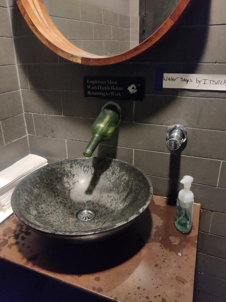 Amerikkalaisen yhteiskunnan erilaisuus paistoi monessakin asiassa, erityisesti mielenkiintoista oli huomata, miten n. 80 % tv-mainoksista olivat vakuutusmainoksia ja lakitoimistojen mainoksia (terveydenhuoltotilanne näkyi mm. näin). Minut yllätti myös se, että lähes kaikki ravintoloiden vessat olivat todella huonokuntoisia ja rapautuneita, vaikka ravintola olisi ollut siisti. Toisaalta, ihan kivoja ja hauskojakin ratkaisuja löytyi (ks. kuva). Vessoissa muuten luki aina, että työntekijöiden täytyy pestä kädet, ennen kuin palaavat töihin. Tämä on ilmeisesti ihan joku laki, mikä tietysti tuntui itsestä hassulta (eikö kaikkien pitäisi ymmärtää pestä kädet vessareissun jälkeen? Tarviiko se lakiakin?). En myöskään ymmärrä, miten jenkit voi elää ilman pussilakanoita?!