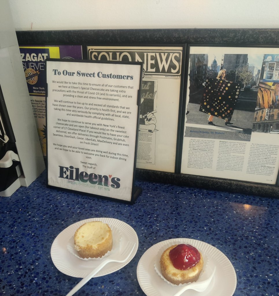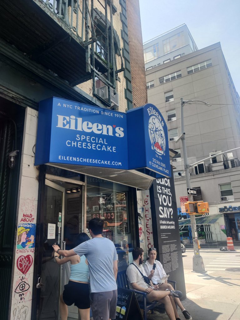 Moni varmaan yhdistää juustokakun New Yorkiin, vaikkei se ilmeisesti ole sieltä kuitenkaan alunperin kotoisin. Olin lukenut, että New Yorkissa parasta juustokakkua saa liikkeestä nimeltä Eileen’s Cheesecake – amerikkalainen ruoka ja viini -lehti Food & Wine tituleerasi vuonna 2019 tätä jopa Amerikan parhaaksi juustokakuksi. Niinpä otimme tämän ihan kohteeksi, ja lähdimme metrolla kohti Eileen’s Cheesecakea. Ja kyllä muuten kannatti! Nämä pienet juustokakut on todella pehmeitä, suussa sulavia mutta maukkaita – eikä tuntunu yhtään liian raskaalta. Luin myöhemmin, että nämä valmistetaan kuumassa vedessä tasaisen lopputuloksen takaamiseksi. Jos käytte NYCissä, käykää ihmeessä tuolla!